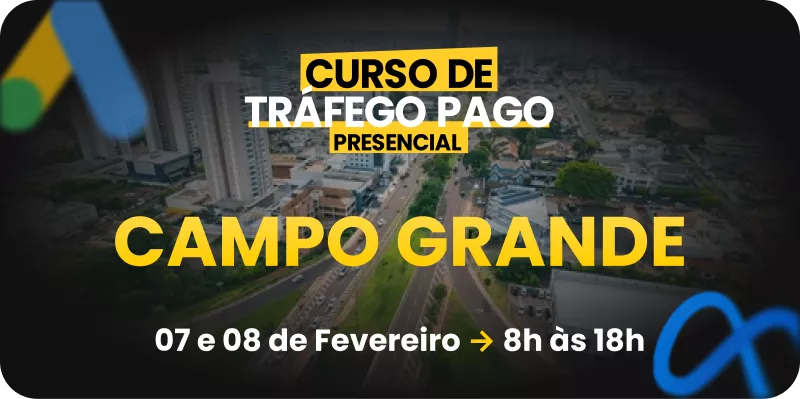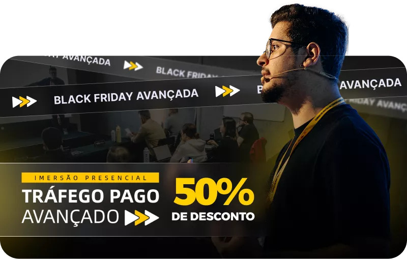 Mais de 20 horas de conteúdo em 2 dias de imersão presencial. Tudo sobre Google Ads, Meta Ads, funis de vendas, captação de leads e estratégias reais para você aplicar no seu negócio ou dos seus clientes.